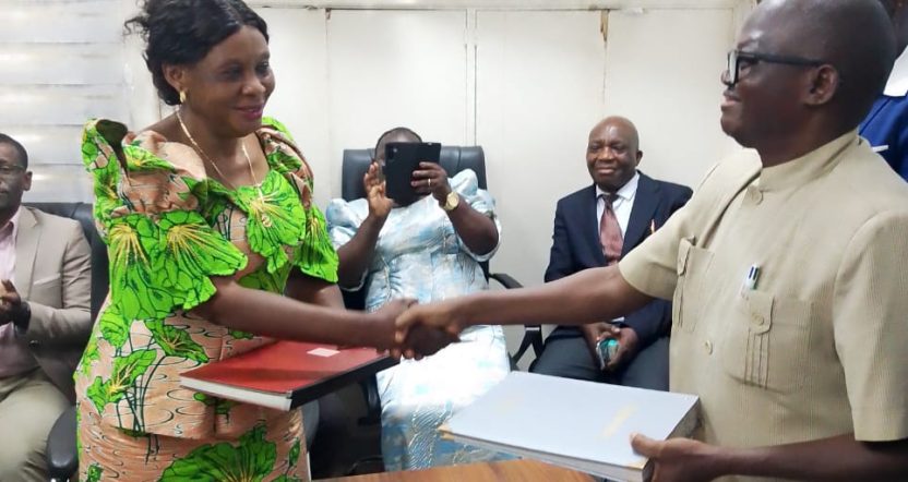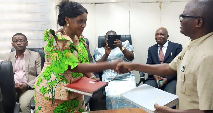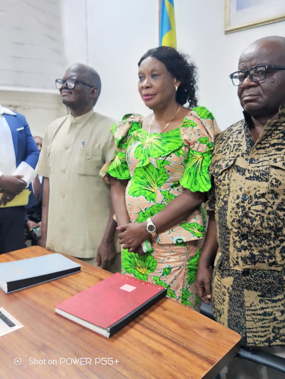 Cette cérémonie a marqué la passation de fonctions entre le Secrétaire Général sortant, Monsieur TOIRAMBE BAMONINGA Benjamin, et la Secrétaire Générale entrante, Madame Pascaline MBANGU KIKUMBI.