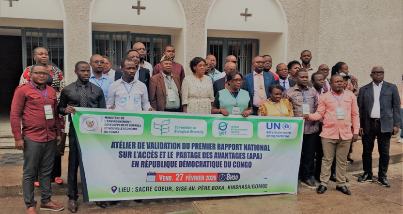 Le Premier Rapport National élaboré en République Démocratique du Congo (RDC) sur l’Accès et le Partage des Avantages (APA) a été validé de manière participative et inclusive ce vendredi 27 février 2026, lors d’un atelier réunissant principalement, des différents représentants et experts des Ministères et Institutions sectorielles concernés, des organisations de la Société Civile ainsi que des Peuples Autochtones et Communautés Locales dans la salle des réunions de la Paroisse du Sacre Cœur à Kinshasa/Gombe.
