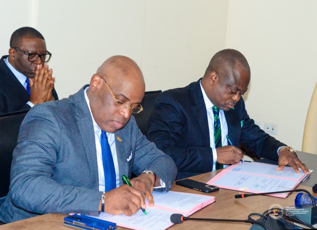 Le Fonds d’Intervention pour l’Environnement (FIPE), et EQUITY BCDC, représentés respectivement par le DG Manassé Ngadie et le DGA Hugues Efole ont signé, ce vendredi 31 octobre 2025, un protocole de partenariat pour le financement des projets environnementaux. La cérémonie officielle de signature s’est tenue en présence de la ministre de l’Environnement, Développement durable et de la Nouvelle Économie du Climat, Marie Nyange Ndambo.