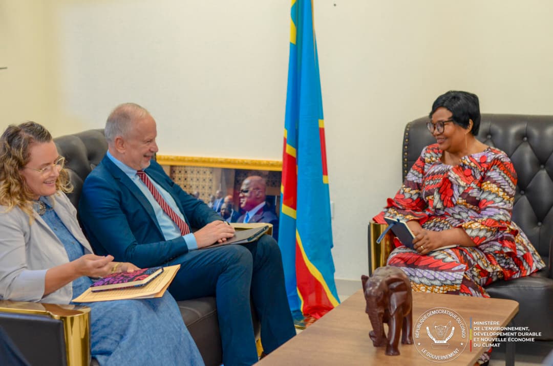Kinshasa, RDC – 23 janvier 2026 Une délégation allemande, conduite par M. Ingo Herbert, Ambassadeur de l’Allemagne en République démocratique du Congo, a été reçue par Madame la Ministre de l’Environnement, Développement durable et Nouvelle Économie du Climat, Marie Nyange Ndambo. Cette rencontre s’inscrit dans le cadre du renforcement de l’engagement de l’Allemagne en faveur de la préservation des forêts du bassin du Congo et du développement durable des communautés locales.