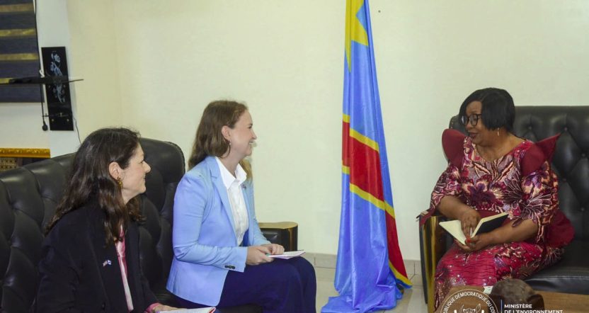 Deux délégations mandatées par l’ambassade britannique à Kinshasa ont conféré vendredi 13 février 2026 avec la Ministre de l’Environnement, Développement Durable et Nouvelle Économie du Climat, Mme la professeure Marie Nyange Ndambo, en son cabinet de travail à la Gombe. Cette rencontre a concerné le niveau de la coopération entre la RDC et le Royaume-Uni sur les questions liées aux forêts de manière générale et, en particulier, sur la gouvernance forestière.